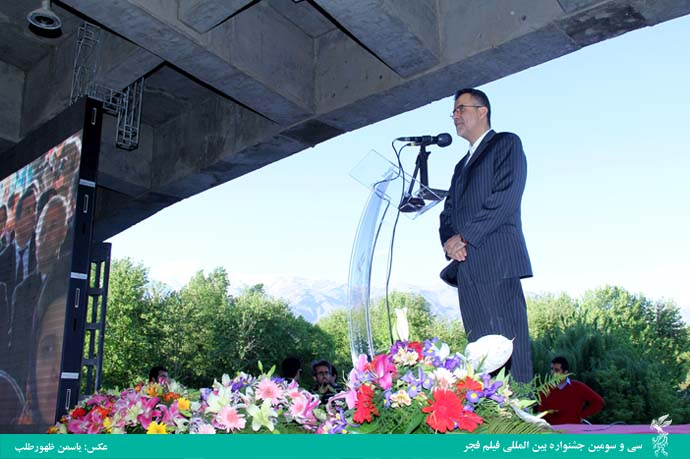 دبیر سی و سومین جشنواره بینالمللی فیلم فجر، در پایان با اعلام آغاز بخش بینالملل این جشنواره گفت: بر او درود میفرستیم و به نام نامی او بخش بین الملل سی و سومین جشنواره فیلم فجر را آغاز میکنیم.