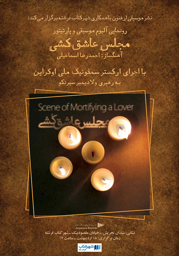 آلبوم «مجلس عاشق کشی» به آهنگسازی احمدرضا اسماعیلی در شهرکتاب فرشته با حضور لوریس چکناواریان و مهران محمودی رونمایی میشود.