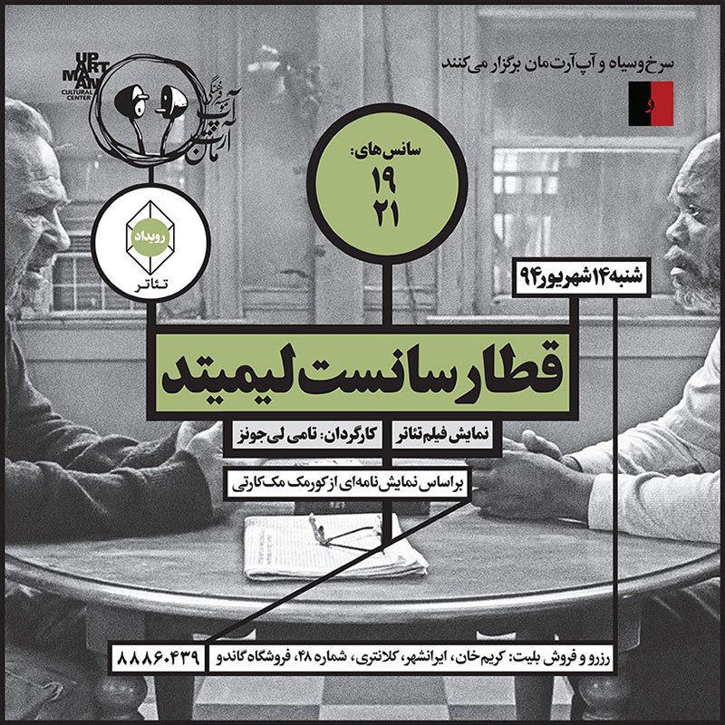 سوره سینما – موسسه فرهنگی هنری آپآرتمان در ادامه برنامه شنبهها با تئاتر شنبه ۱۴ شهریور در دو نوبت ۱۹ و ۲۱ فیلم تئاتر سانست لیمیتد را با کارگردانی تامیلیجونز به نمایش میگذارد.