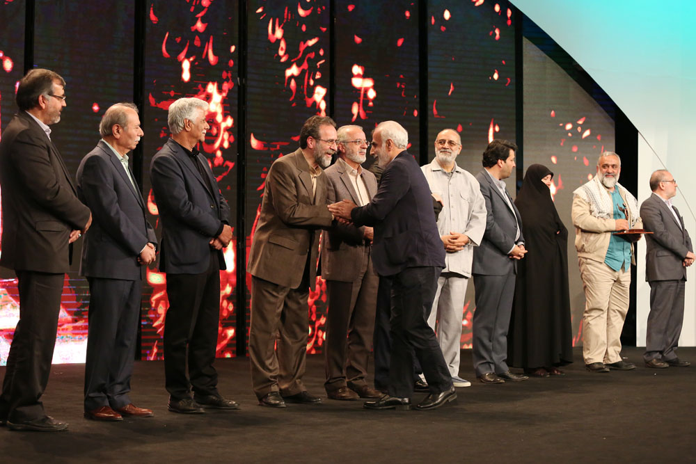 هیات داوران فیلم های مستند بین الملل به همراه دکتر حمید شاه آبادی معاون پژوهشی صداوسیما و فرزند شهید سرلشکر آبشناسان جوایز این بخش را به نفرات منتخب اهدا کردند.